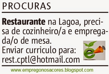 Cozinheiro e empregado de mesa M/F - Lagoa, S. Miguel